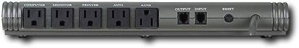 5-outlet power center with 2391-joule energy also has sockets for phone, fax and modem. Under-monitor design keeps cords off the floor, away from children and pets.