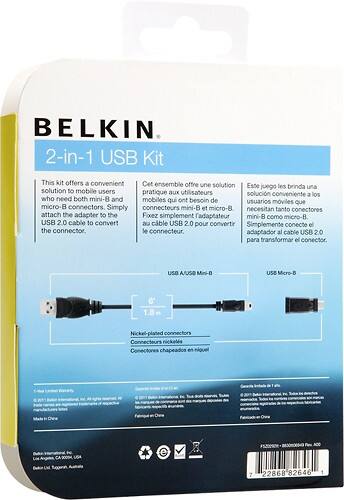 Belkin 6' USB Mini-B Cable with USB Micro-B Adapter