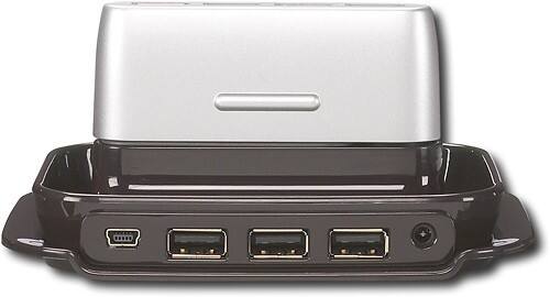 This design gives you two ultrafast USB hubs in one: a stable base and a travel hub. The 3-port base can connect your larger more stationary equipment, such as printers and hard drives. The detachable, 4-port travel hub offers a great connection point for your mouse, MP3 player, camera, and fl ash drives. It's easy to take on the road, and simply plugs into a USB port on your laptop when you need it. Its rotating connector keeps adjacent ports free.