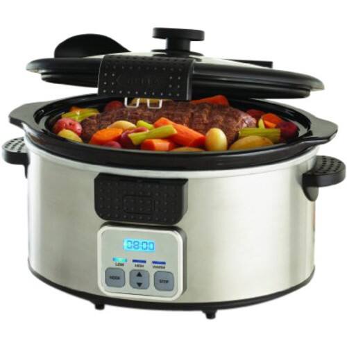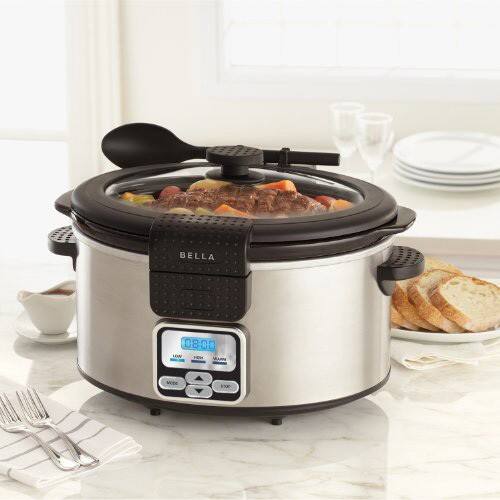 Bella - 13722 Programmable Slow Cooker with Locking Lid & Serving Spoon, 6-Quart - Black, Stainless Steel