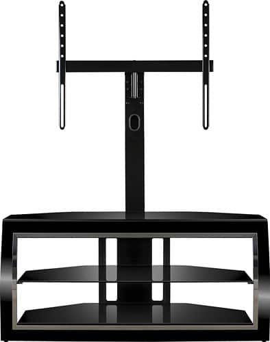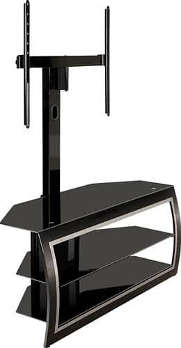 We purchased a plasma TV however we didn't want to hang it on the wall or use the base it came with. This stand delivers. At the lowest, we were able to have it a foot off the top shelf. It does take 2 people to install the middle shelf & place the TV. There were many more stands we could have bought however we would have had to buy an upright attachment that "might not have fit" our TV.