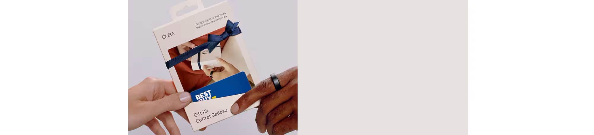 - Choose the Oura Ring 4 gifting sizing kit (gifting sizing kit includes a free $10 Best Buy e-Gift Card*) or a package including the gifting sizing kit and a Best Buy Gift Card in an amount equal to the price of an Oura Ring 4