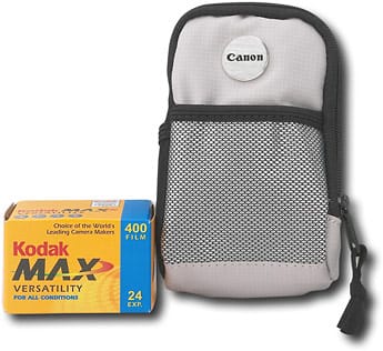 Includes soft carrying case, wrist strap, battery and 1 roll of 35mm color print film