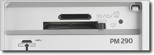 Memory card slots support CompactFlash Type I and II, Secure Digital, Secure Digital High Capacity, MultiMediaCard, Memory Stick, Microdrive Type M and H and xD-Picture Card formats
