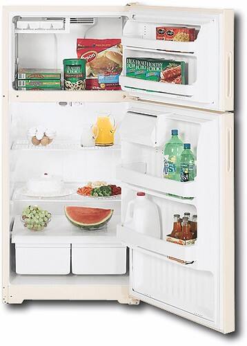 GE - 15.7 Cu. Ft. Frost-Free Top-Mount Refrigerator - Bisque-on-Bisque