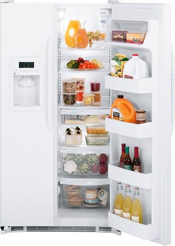 GE - 25.3 Cu. Ft. Side-by-Side Refrigerator with Thru-the-Door Ice and Water - White-on-White