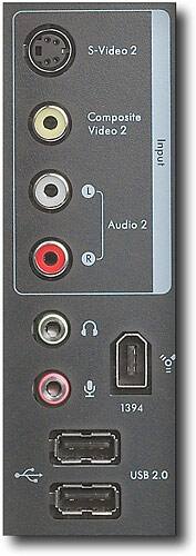Built-in TV tuner with PVR (personal video recorder) and FM tuner (antenna included); composite video, S-video and audio inputs