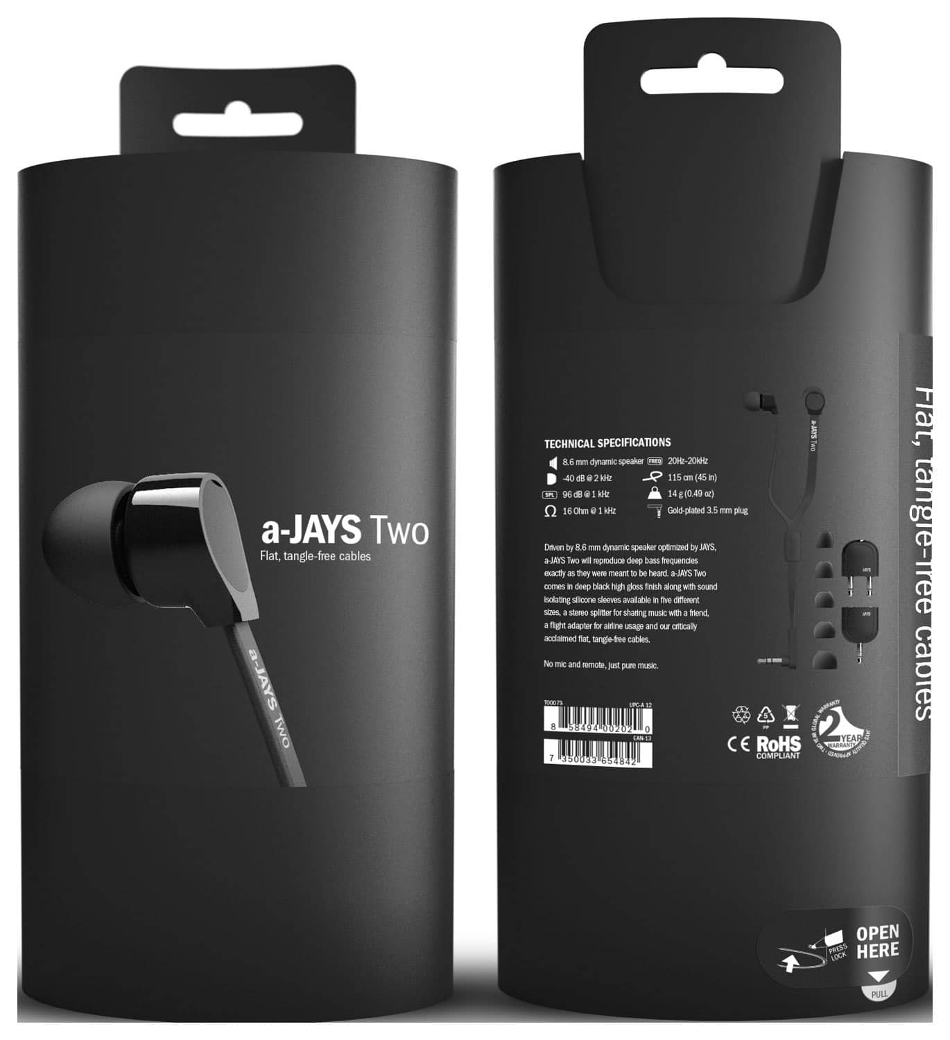 Enjoy distraction-free music with these JAYS of Sweden a-JAYS Two T00073 headphones, which feature 5 sizes of noise-isolating silicone ear sleeves to effectively block out background sounds. A stereo splitter lets you listen with a friend.