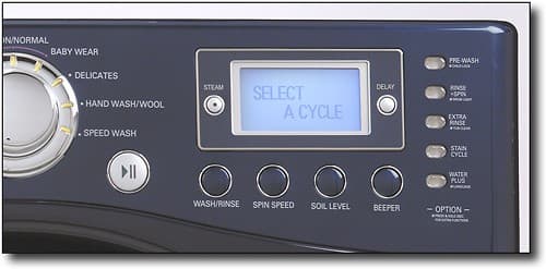 7 dry options include more time, less time, custom program, damp dry beep, wrinkle care, rack dry and antibacterial