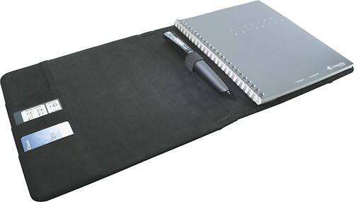 Your LiveScribe SmartPen is a savior in meetings, the classroom and on business trips. You want to take its scribble-sensing intuition everywhere you go — it's the ultimate in convenience and time management. But juggling your pen, notebooks and papers — in addition to all of your other everyday essentials — can make you feel unorganized. You're smart. Your technology is smart. Get the smart organization to bring it all together.You'll look professional and feel confident when your cutting-edge LiveScribe technology is tucked neatly away in the specially tailored LiveScribe Folio Cover. Simply strap your Pulse or Echo SmartPen into a secure elastic band, fold your A5 notebook or hardbound journals into the sleek cover and everything you need is immediately organized, efficient to access and business meeting-ready. As you make contacts and pick up business cards along the way, the cover's specially sized pocket keeps them close at hand and easy to find. Keep your organization on the cutting edge, just like your SmartPen technology.