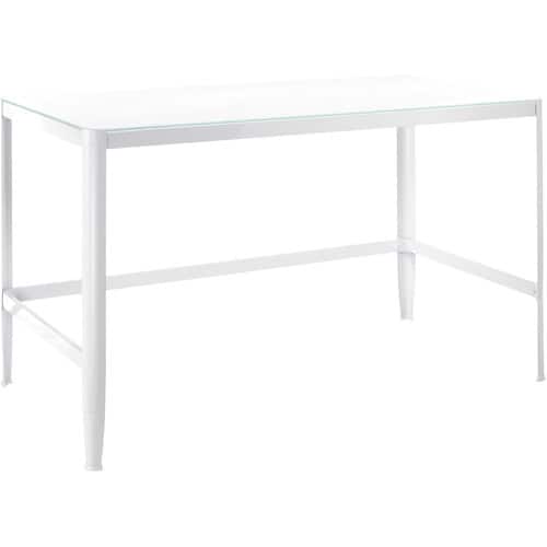 The Pia Table / Desk has a tempered glass top, metal frame, and is made using knock-down construction for easy set up, breakdown and storage. Enjoy the simple elegance of the Pia as a desk while you work or as a small table!