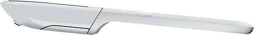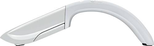 Curves when powered on for comfortable operation, and flattens when powered off for easy portability and packing. A green light flashes to let you know the battery is working properly, then turns off to conserve battery life.