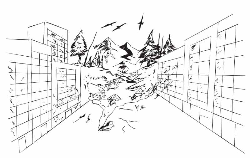 "This piece is about the organic elements taking over, letting nature run its course on everything humanity has done."