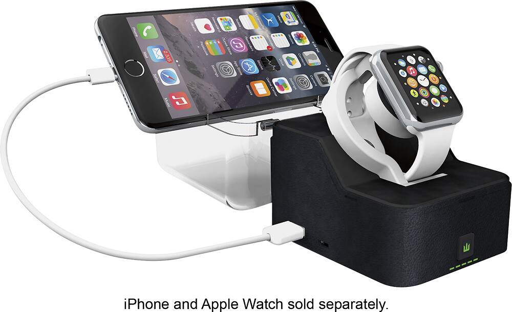 Keep your Apple Watch 38mm or 42mm and other USB devices powered on the go with this Trident Case Odyssey Valet OD-APWATC-BKVAL portable charging pedestal, which features internal and external USB ports and a 2600 mAh rechargeable battery.