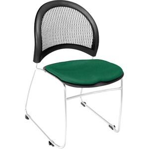Stacks 6 high without dollyStacks 16-20 high with optional dollyTriple curve seat designExtra thick curved back with built-in lumbar supportSilver powder-coat paint finishStain-resistant fabricReplaceable seat cushionsSled base