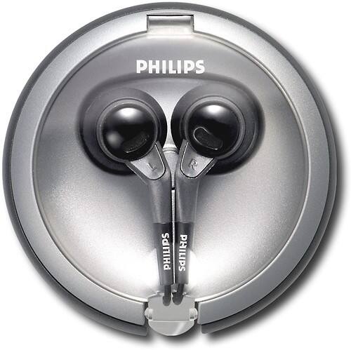 Philips - Ear Bud Headphones with Case - Black