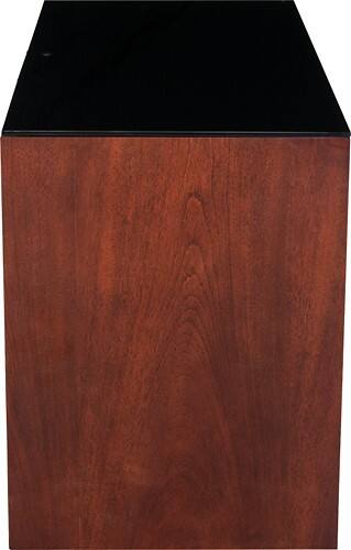 Blend your TV into your room design with this sleek stand for flat-panel TVs up to 55". Two tempered-glass shelves provide ample storage for A/V components or gaming consoles, while a media drawer makes it easy to organize small items.