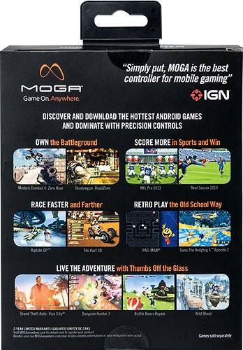 Lets you instantly connect to your MOGA Enhanced Games (not included). N.O.V.A. 3 game and Pacman game included (download required).