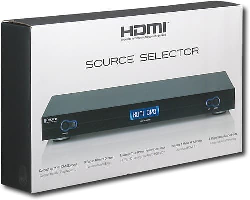 With TVs, receivers, stereos, video game consoles, DVD players and more, your home entertainment center can quickly become a giant mess. The most impressive entertainment centers offer complete access to their components with ease and reliability. Nobody wants to unhook cables from one source and plug them into another, over and over again. With this HDMI Switcher, those days are gone for good.The HDMI Switcher lets you switch between four HDMI and/or digital optical audio sources. Featuring a gold connection, you can be assured you're getting a high-quality product. With a programmable LCD display, a component-sized case and a 3.3' HDMI cable, you're getting the HDMI 1.3-compliant switcher you need to efficiently connect the components of your entertainment center.169.99