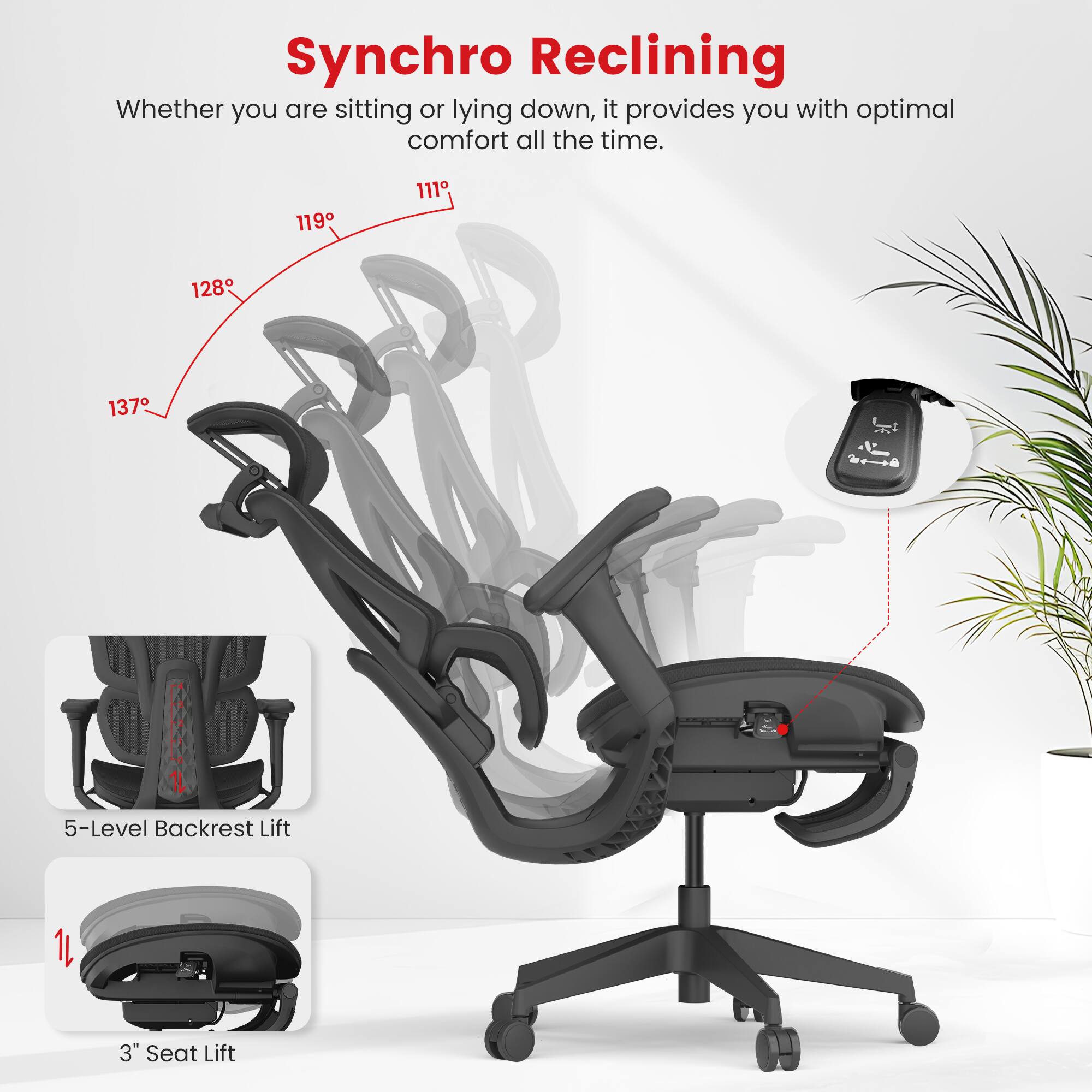 - A:Answer The ergonomic lumbar support effectively reduces spine and back pain while maintaining the natural curve of the lower back, promoting a healthier and more comfortable posture.