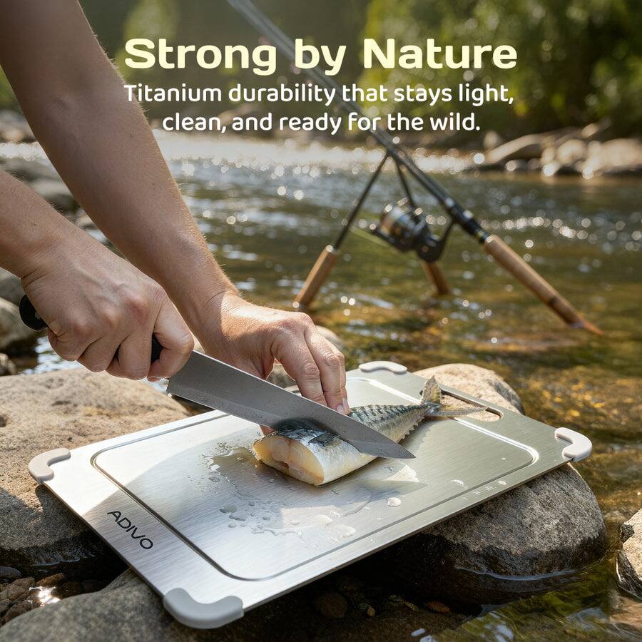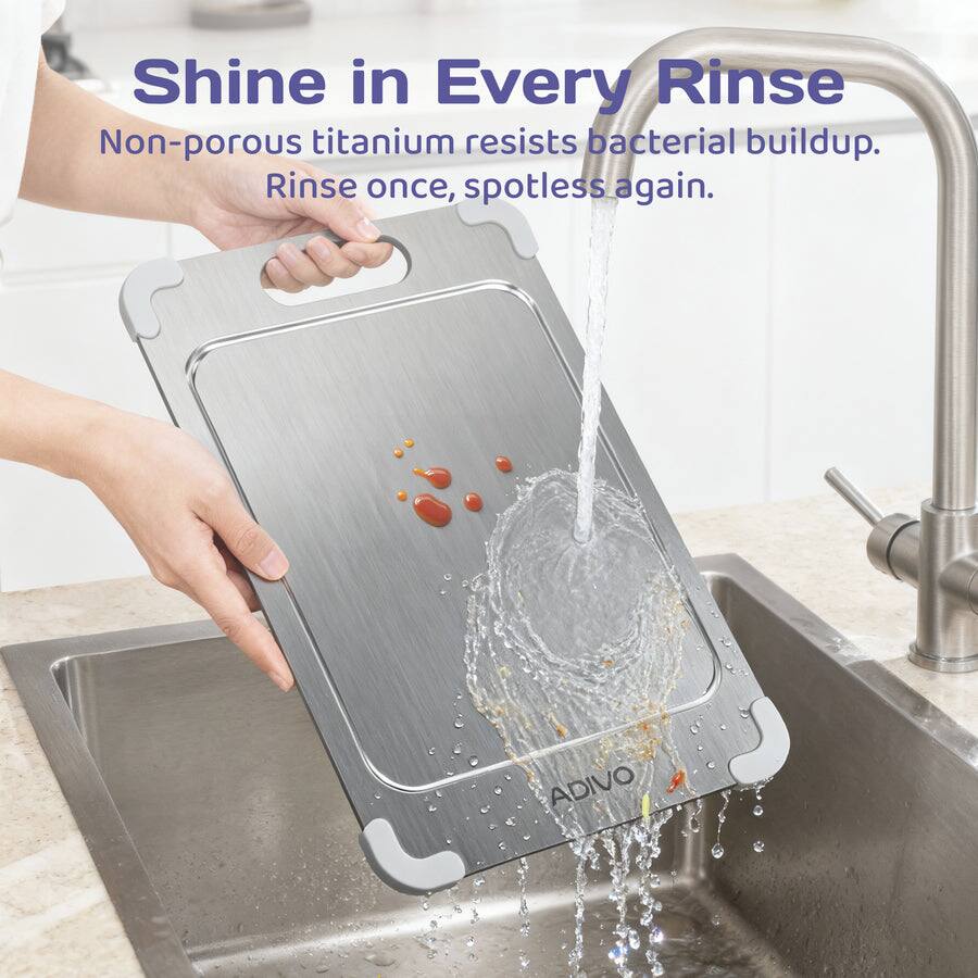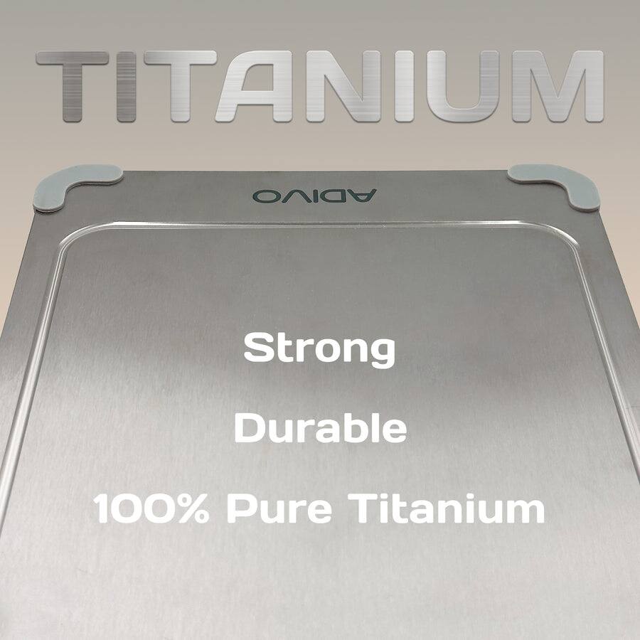 Adivo - Titanium Cutting Board, Double-Sided 100% Pure Titanium, Non-Porous Easy Clean with Juice Groove & Non-Slip Corners