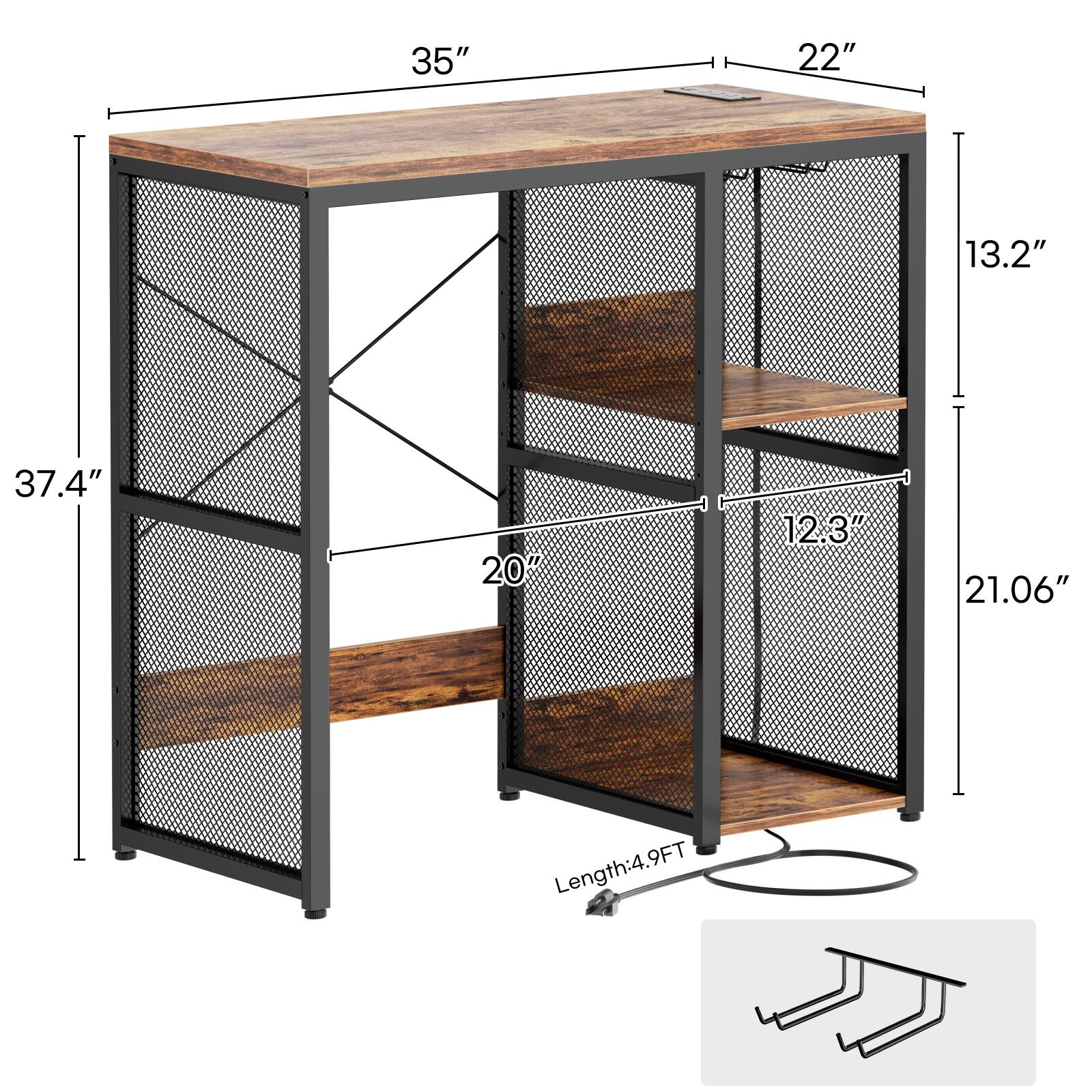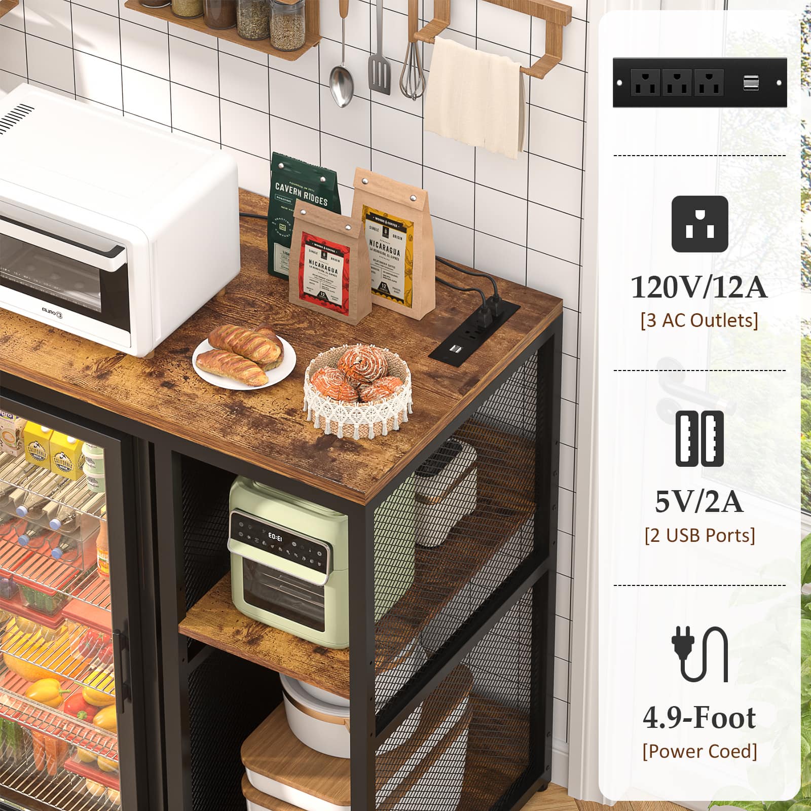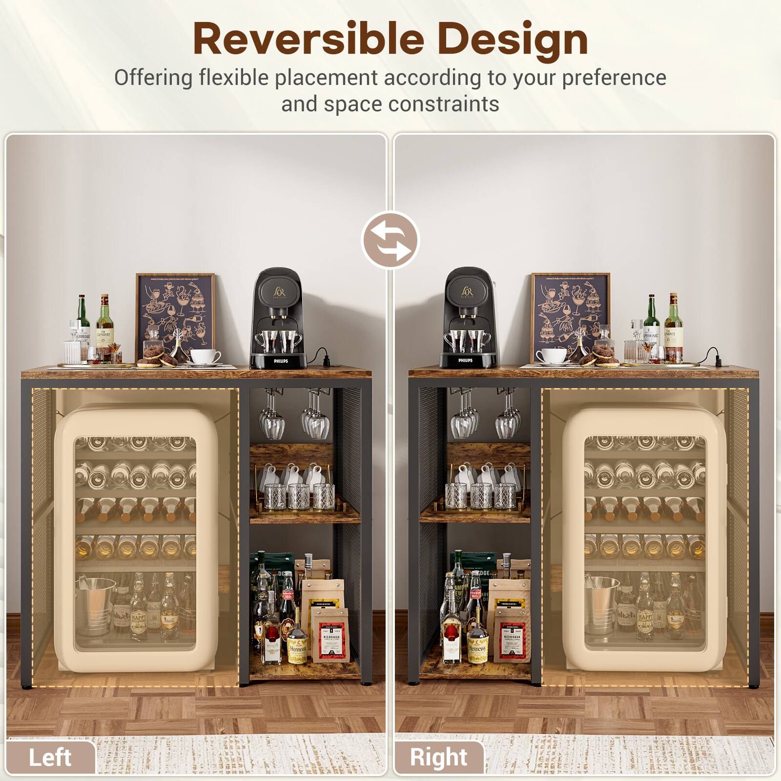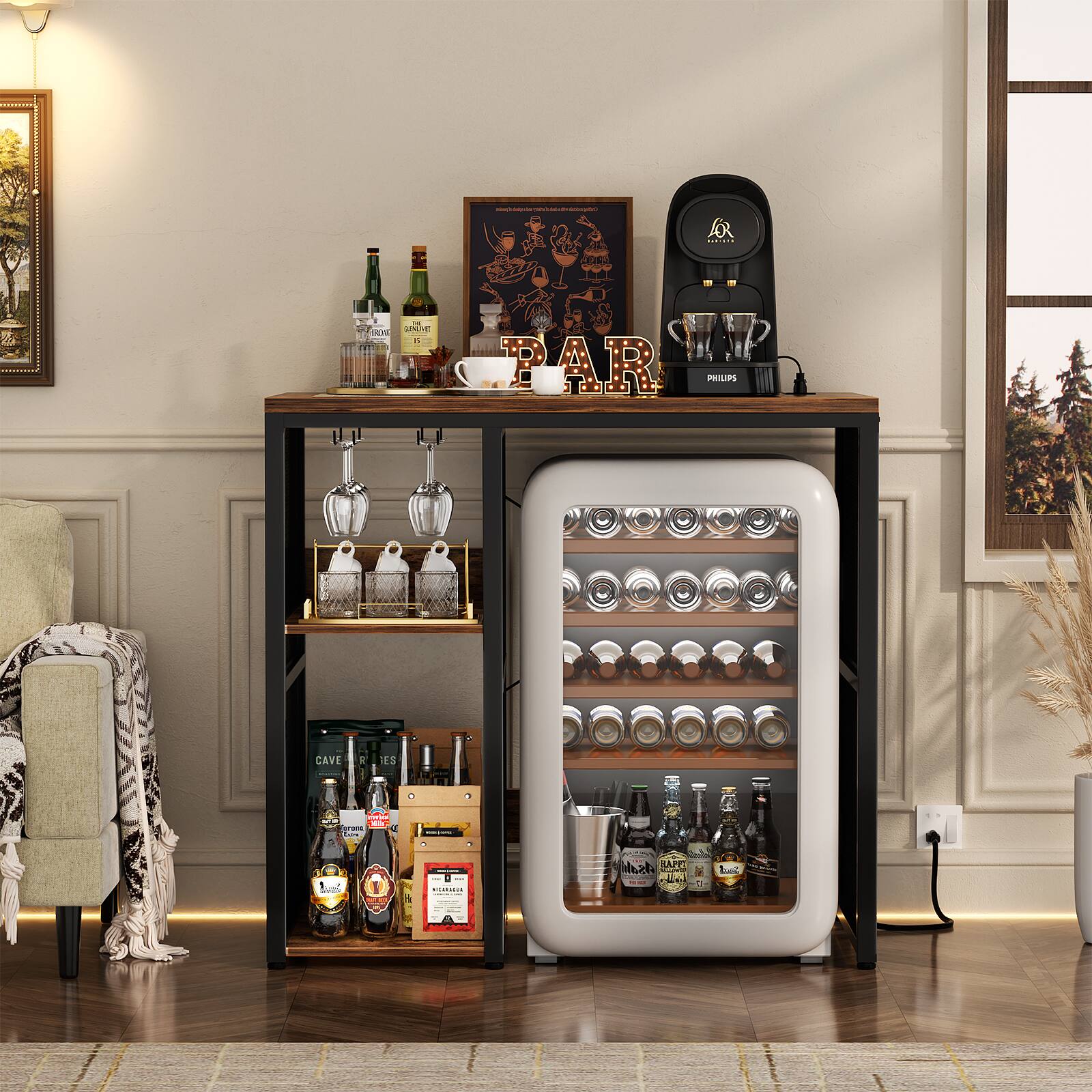 Aheaplus - Small Bar Cabinet with Mini Fridge Space, Coffee Bar Microwave Stand with Power Outlet & Glass Holder for Kitchen - Brown