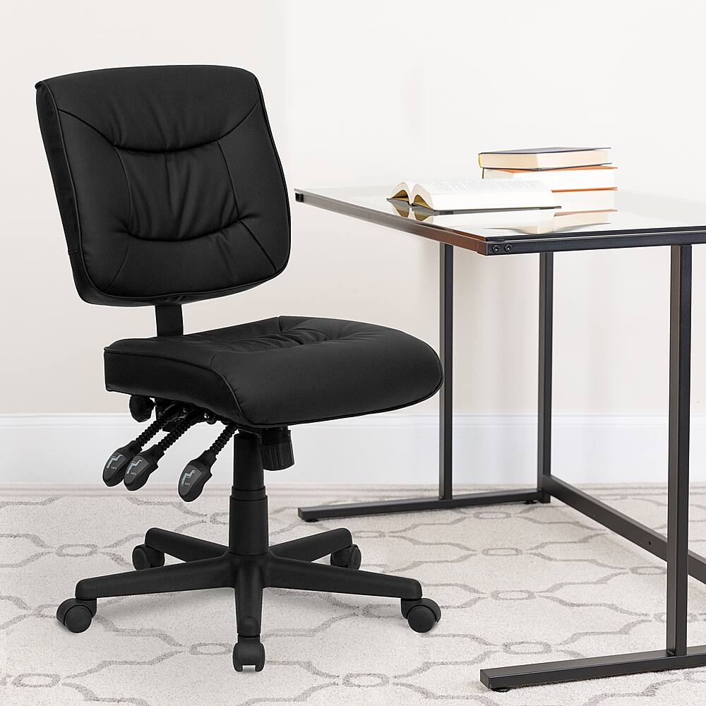 - A:Answer This chair features a comfortably padded seat and back with built-in lumbar support for long hour work days.