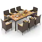 Costway - 7 Pieces Outdoor Wicker Dining Set with Acacia Wood Table and 6 Armchairs - Mix Gray,BeigeBlack Friday Deal$398.99Your price for this item is $398.99