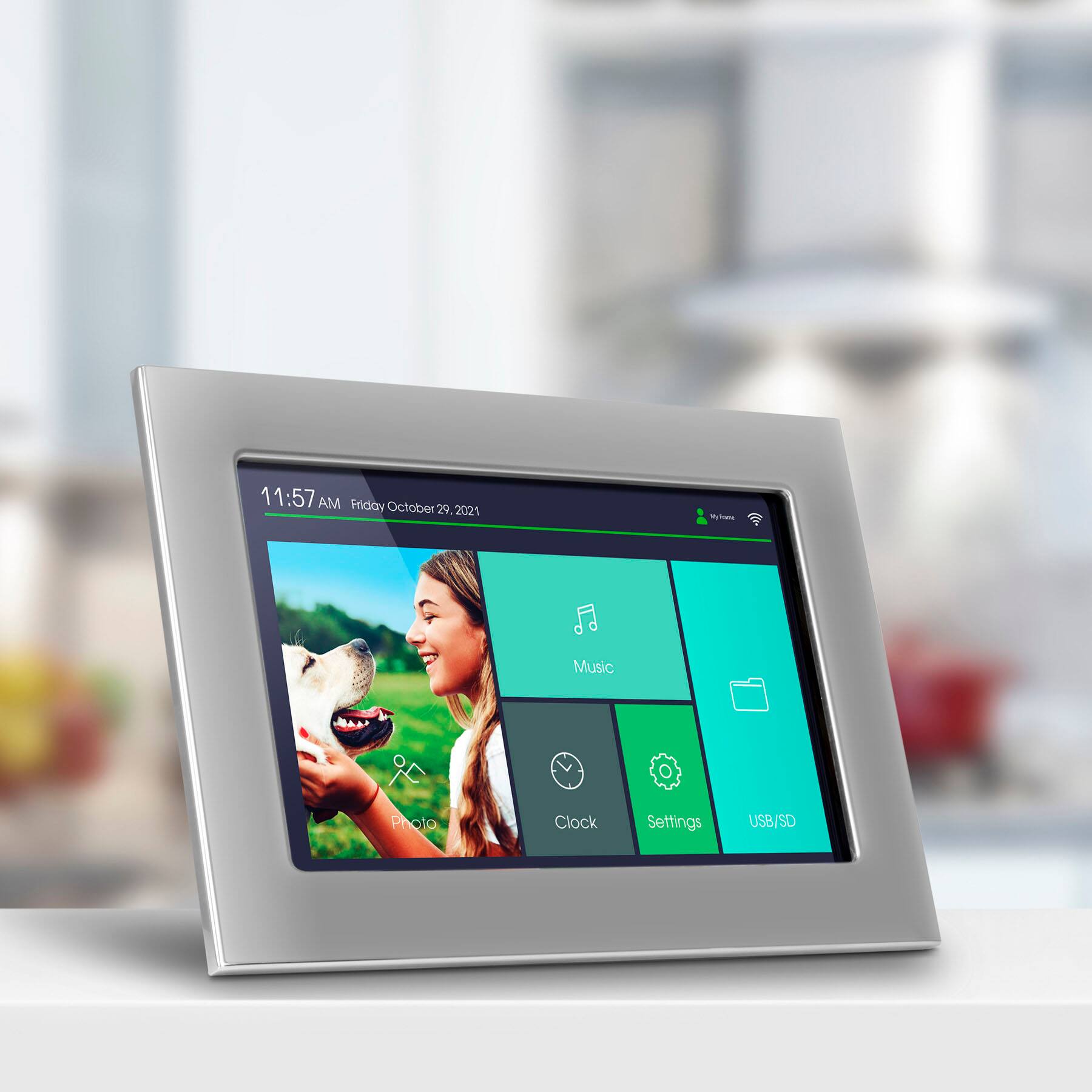 A:AnswerVideo needs to be in .mp4 or .avi format. Use a 32GB or smaller SD card to store and play. Once the first person sets up the frame using the FrameTime app, the other people you wish to share the app with should get Share Requests from the original setup person. You do that from the FrameTime app and send the share request. Contact us at [email protected] for more info.