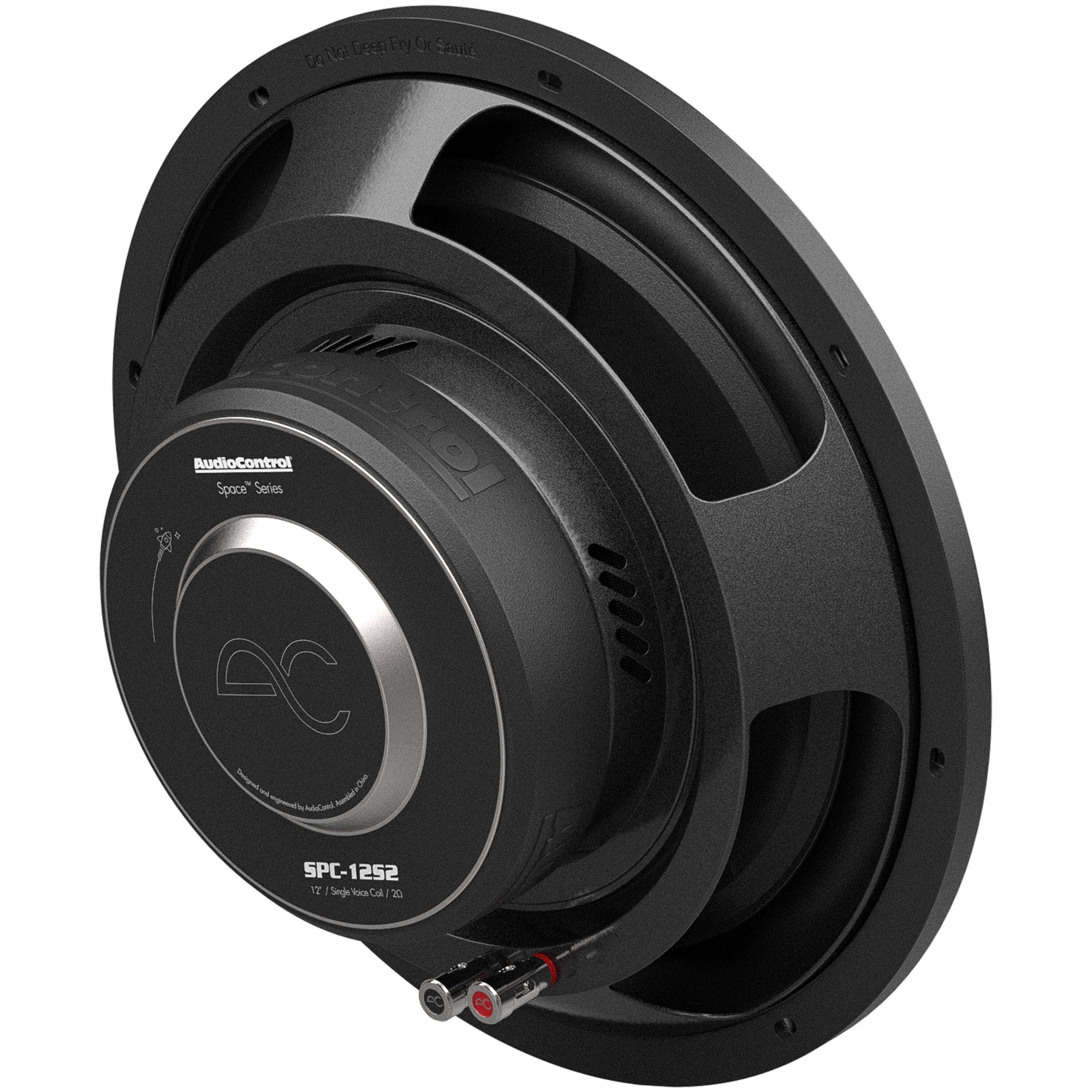- A:Answer The AudioControl Space Series subwoofer has a width of 12.37 inches, a depth of 5.36 inches, and a height of 12.37 inches.