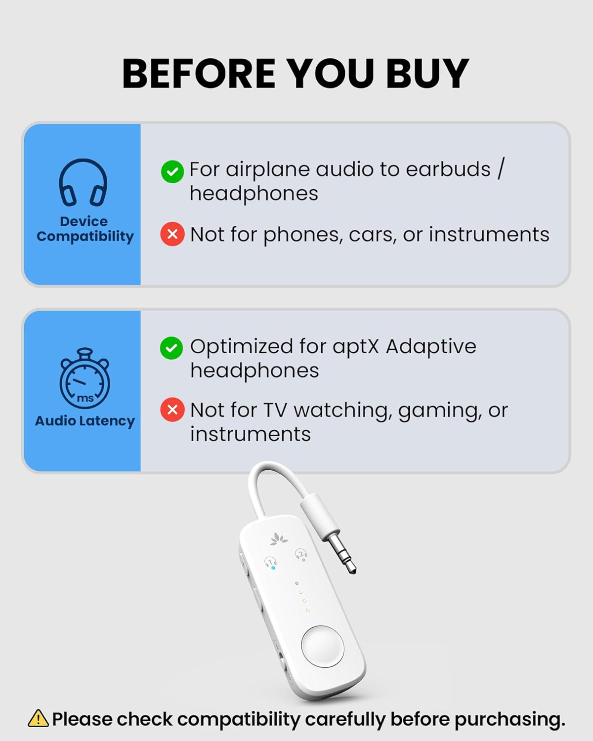 Avantree - Relay - Airplane Bluetooth 5.3 Adapter with Qualcomm aptX Adaptive, Supports 2 AirPods or Headphones