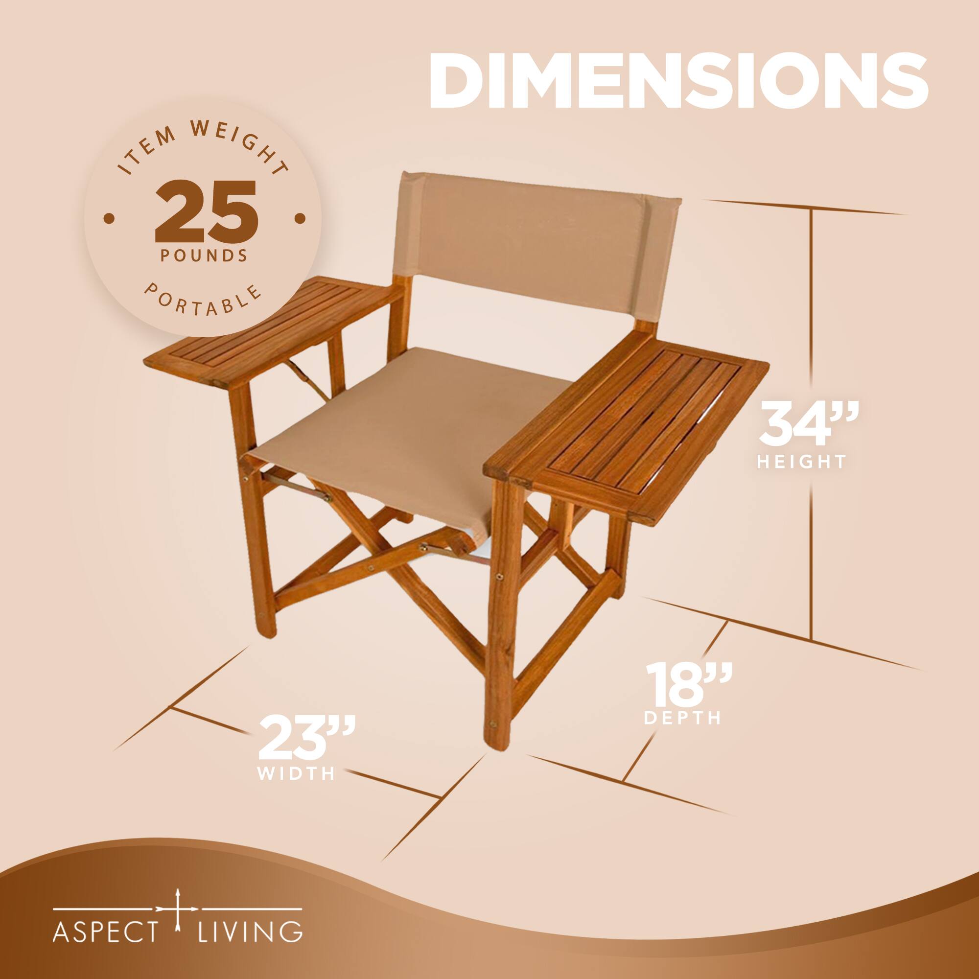 - A:Answer The product weight of the Walker Outdoor Folding Directors Chair with Side Tables is 20 pounds.