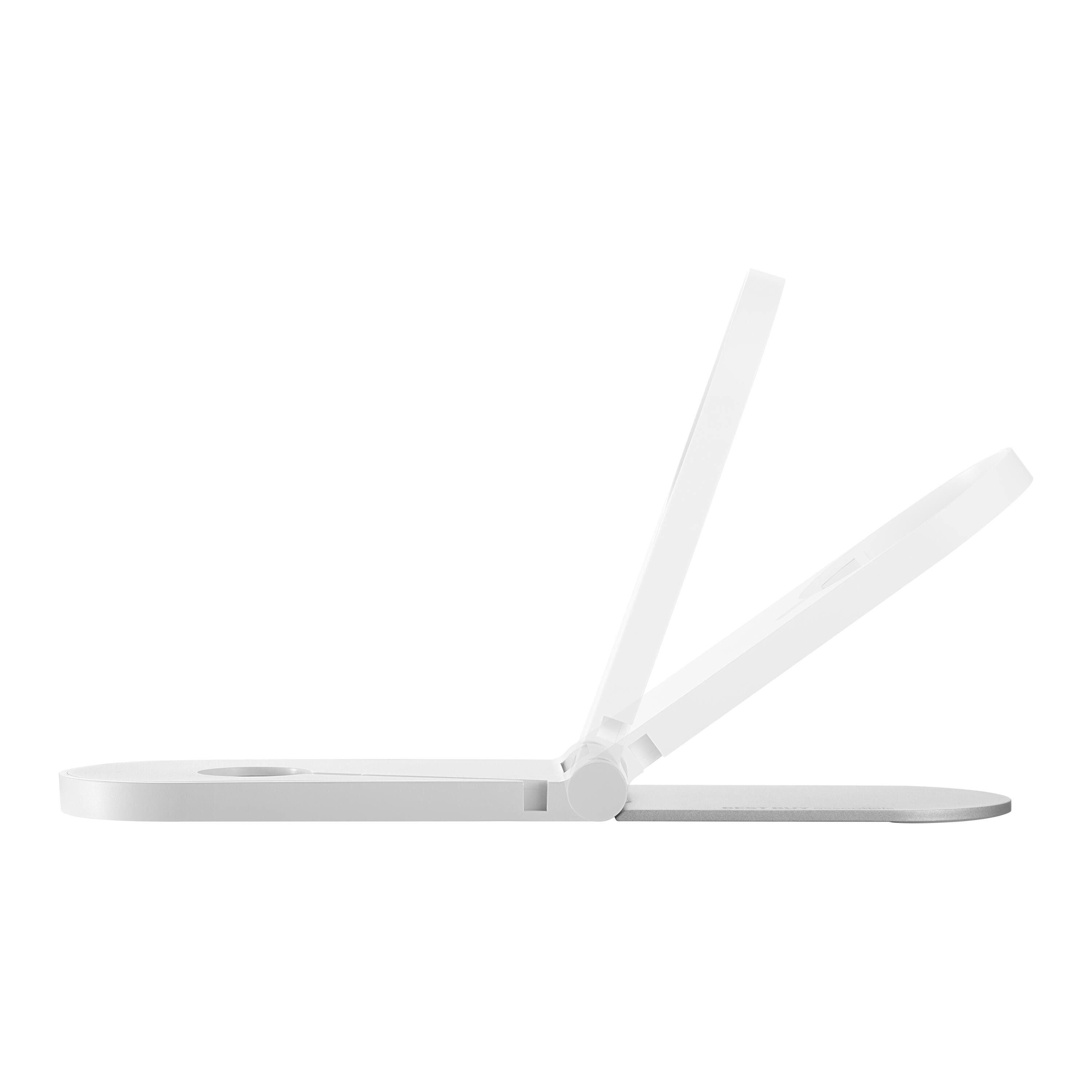 A:AnswerIt can be done, it’s not really designed for it to lay on the side, but it does still charge. Just know that your phone will be touching the table when placed that way. The stand also lays flat.