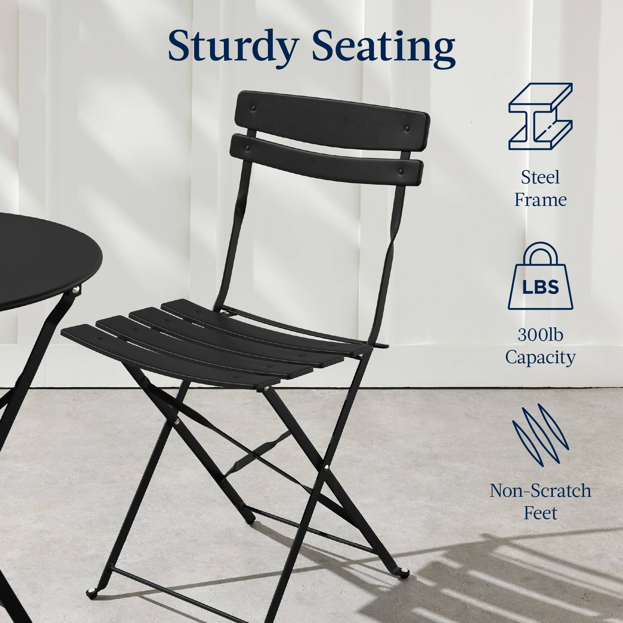 Best Choice Products - 3-Piece Small Bistro Set, Folding Patio Furniture Set of 2 Chairs and Table - Black