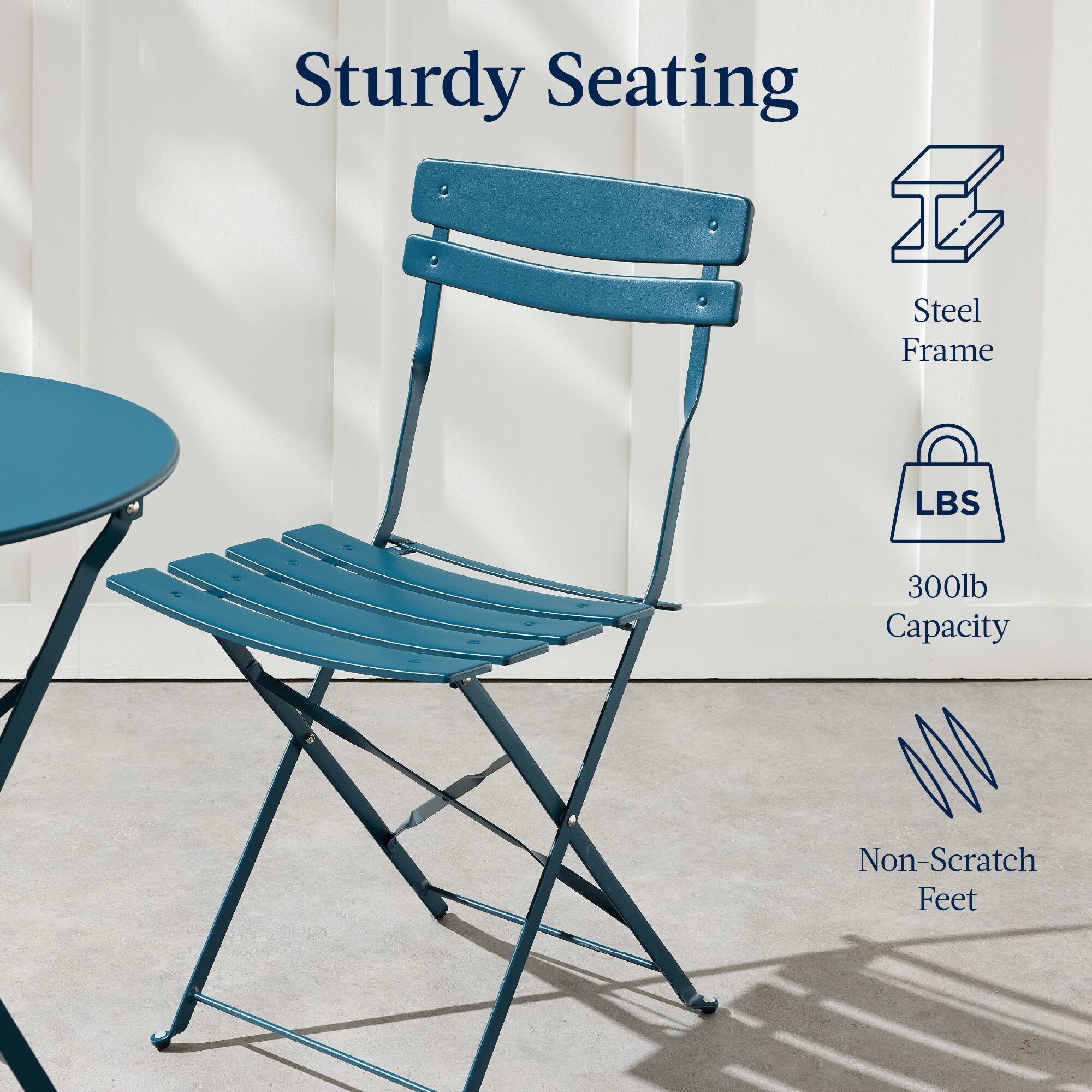 Best Choice Products - 3-Piece Small Bistro Set, Folding Patio Furniture Set of 2 Chairs and Table - Peacock Blue