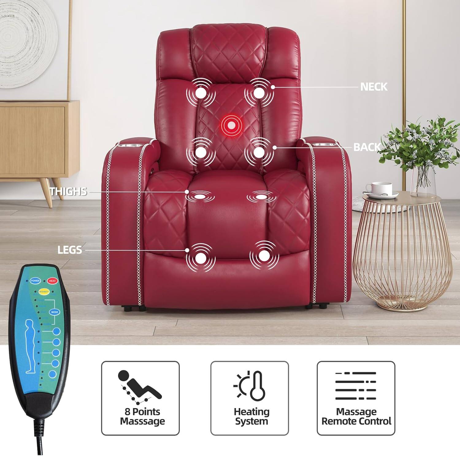 This question and answer was generated by AI based on customer and product data.QuestionHow many massage points does the recliner have?