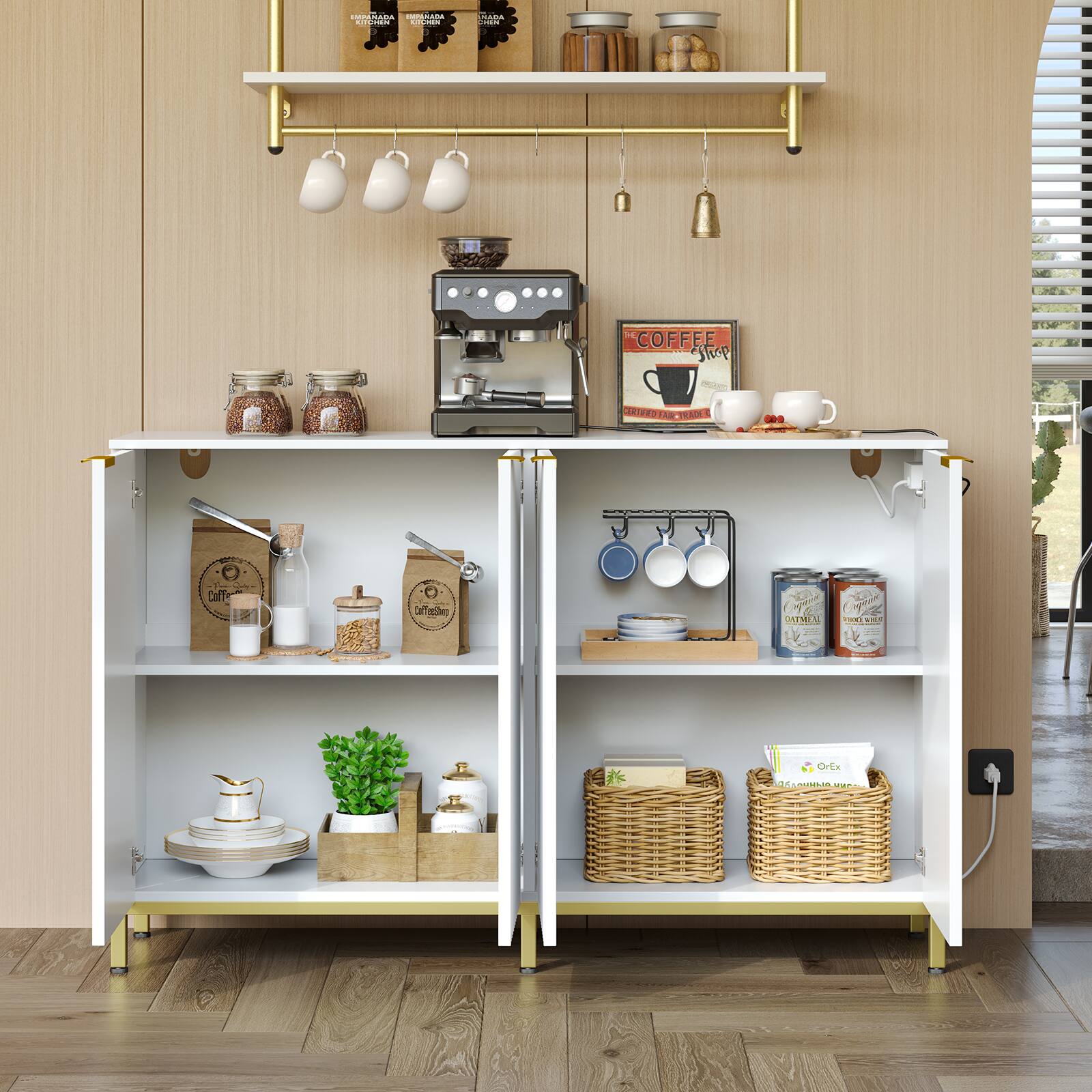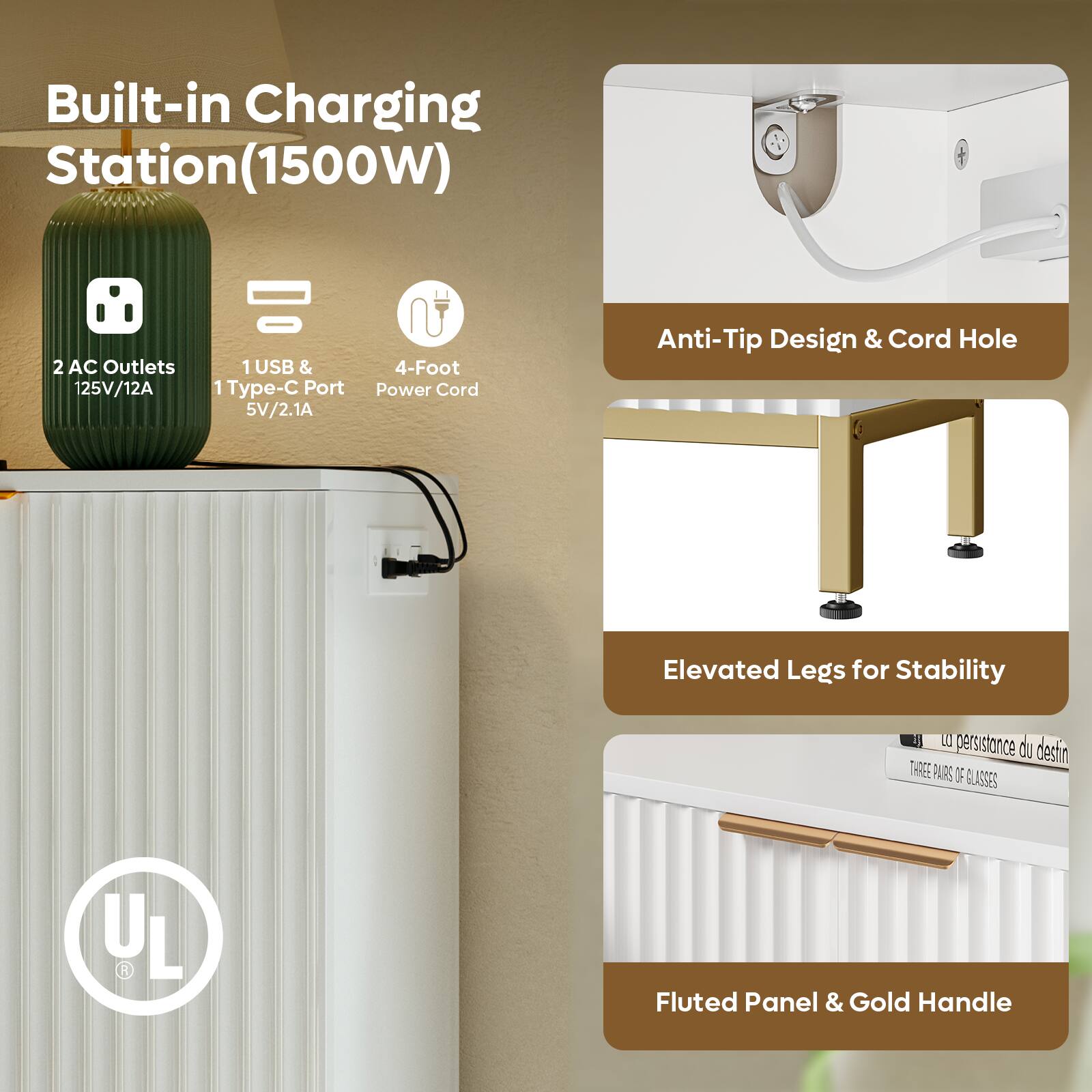 This question and answer was generated by AI based on customer and product data.Q: QuestionHow many outlets does the Bestier sideboard cabinet have?