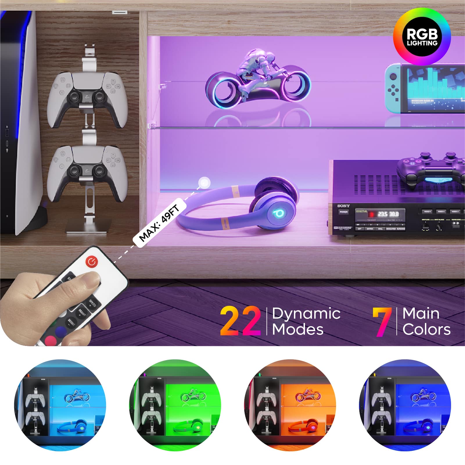 This question and answer was generated by AI based on customer and product data.QuestionHow many colors do the LED lights on this TV stand have?