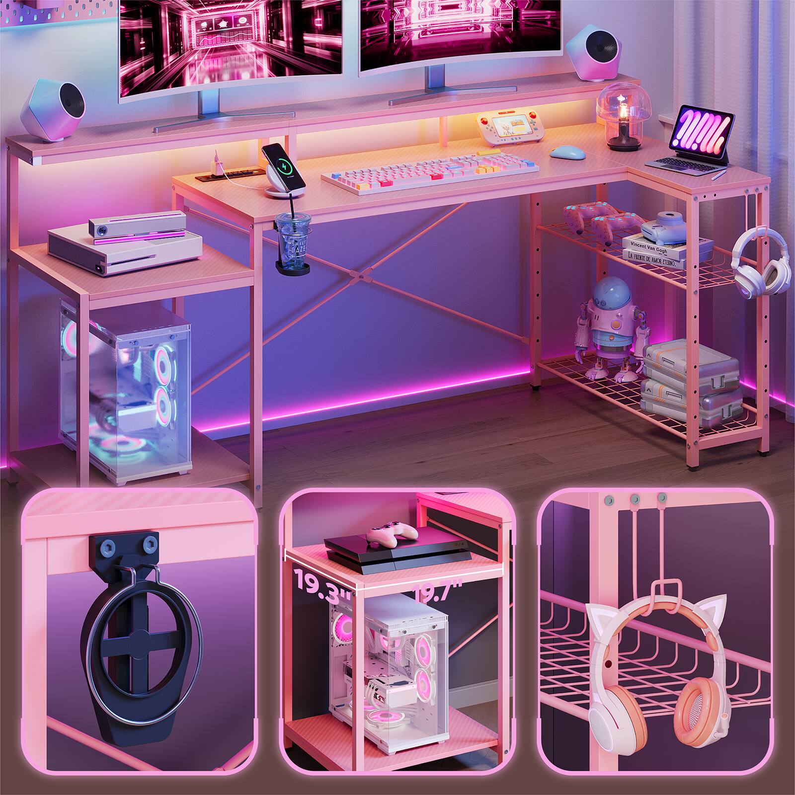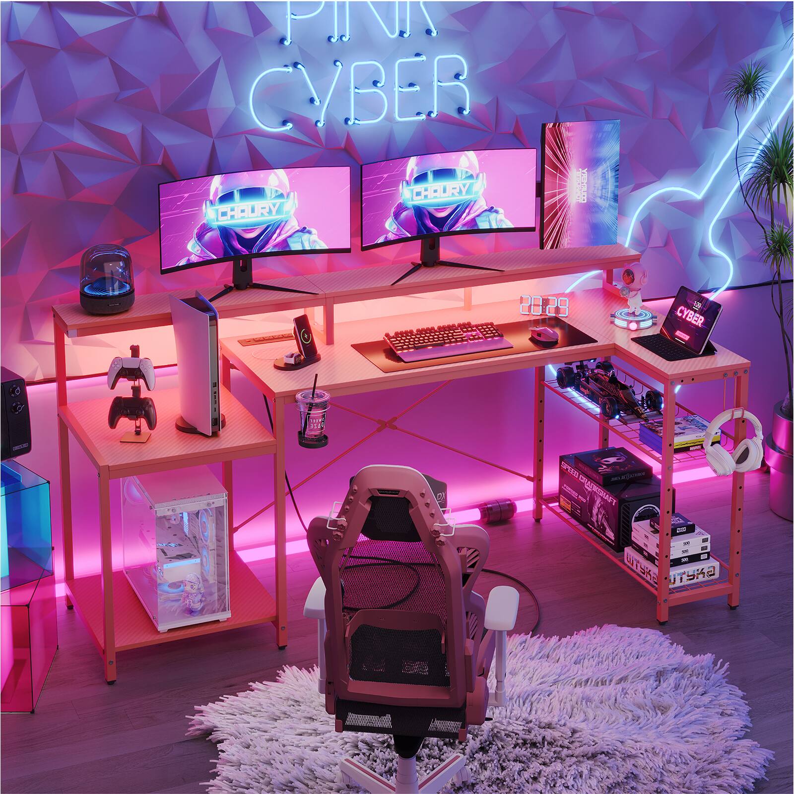 This question and answer was generated by AI based on customer and product data.QuestionHow many devices can be charged simultaneously on this L-shaped desk?