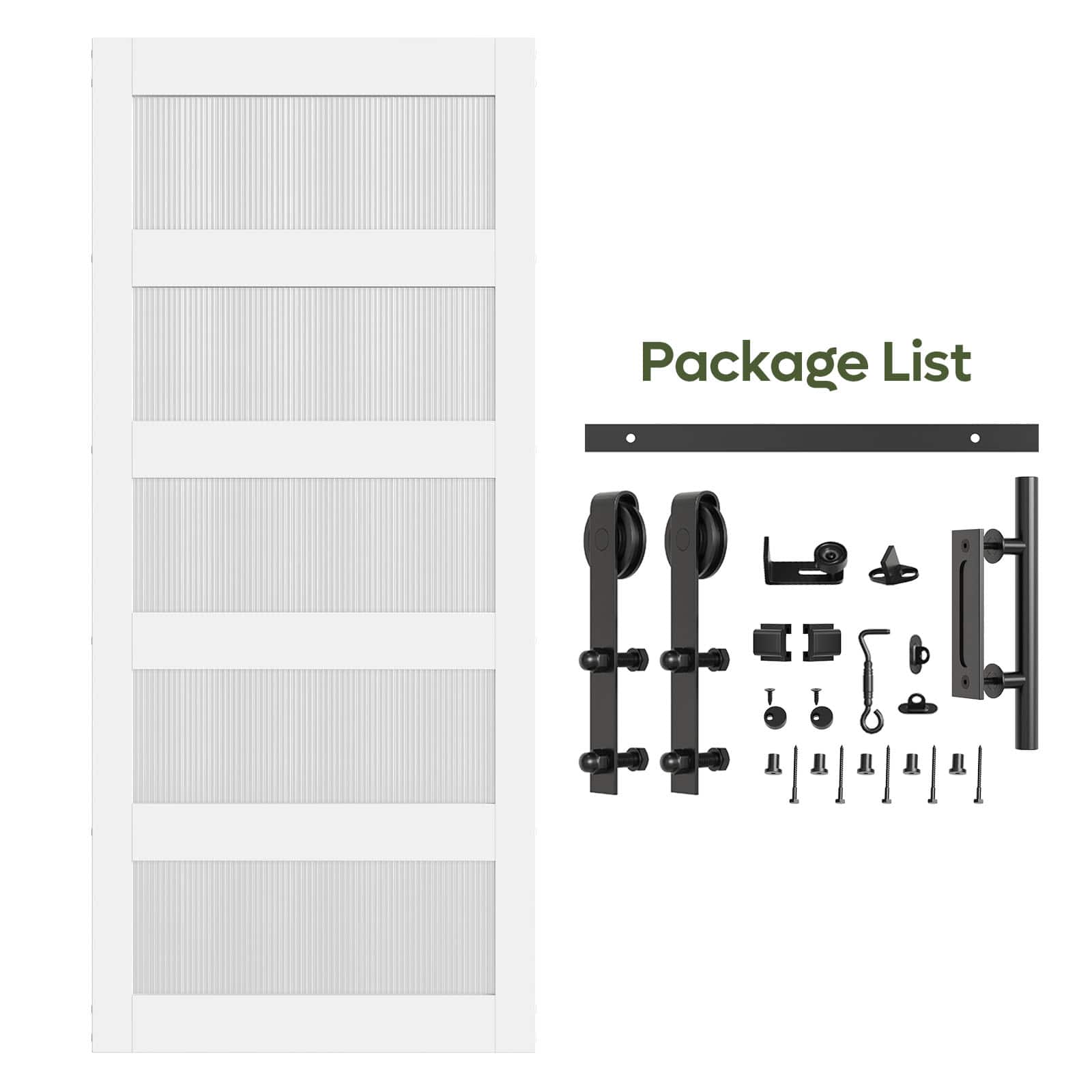 - A:Answer This contemporary 5-lite sliding barn door comes complete with a hardware kit.