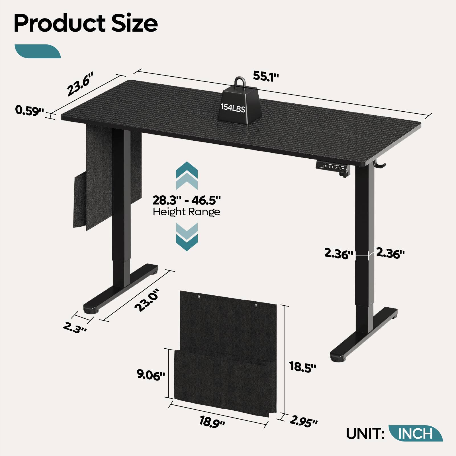 - A:Answer The desk does not have any other storage compartments besides the side pocket. "Storage Compartment Type: Not Applicable" is listed in the specifications.