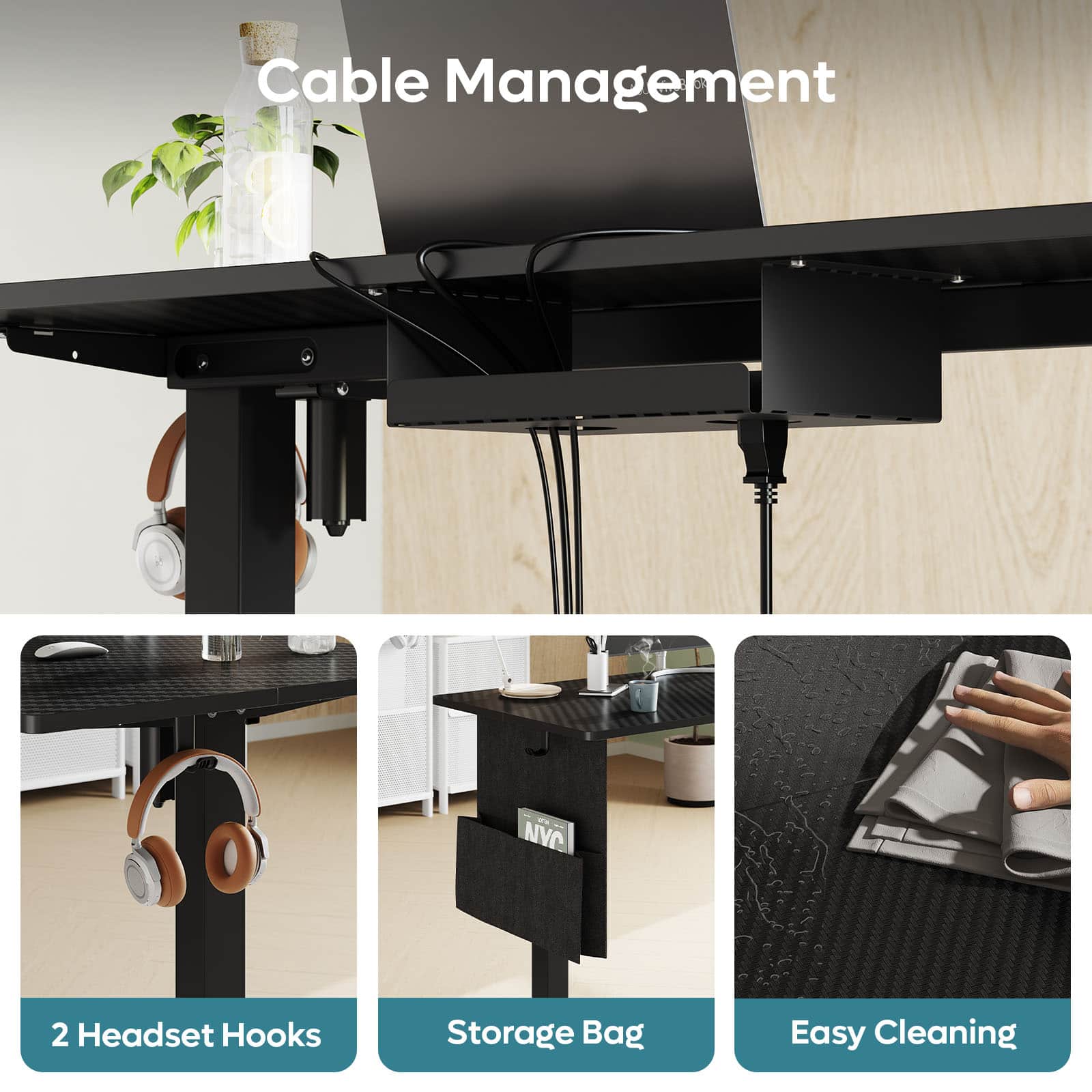This question and answer was generated by AI based on customer and product data.Q: QuestionDoes the desk have any other storage features besides the side pocket?