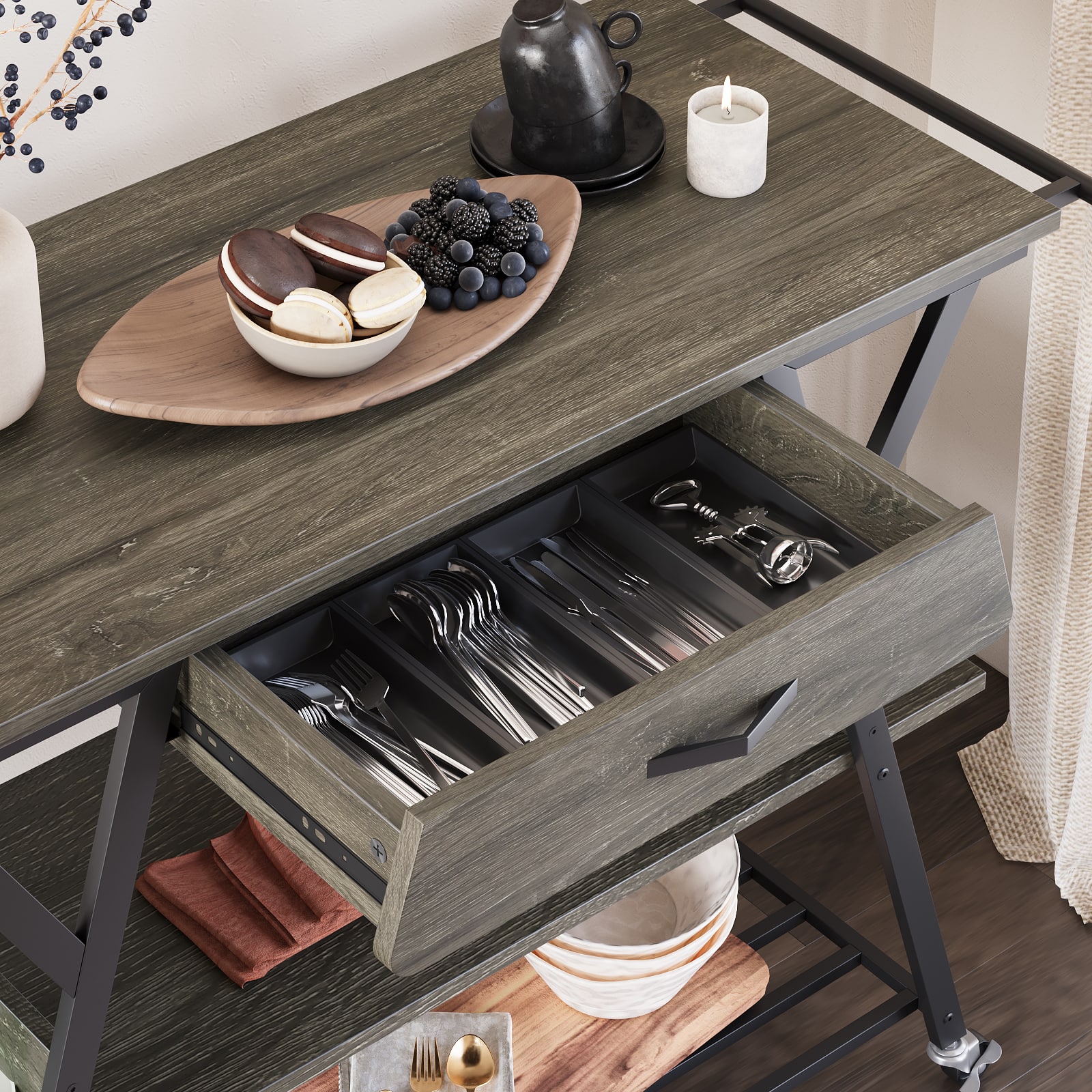 This question and answer was generated by AI based on customer and product data.QuestionDoes this cart include a drawer for storage?