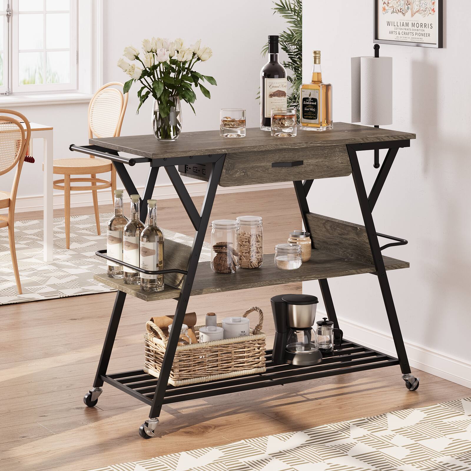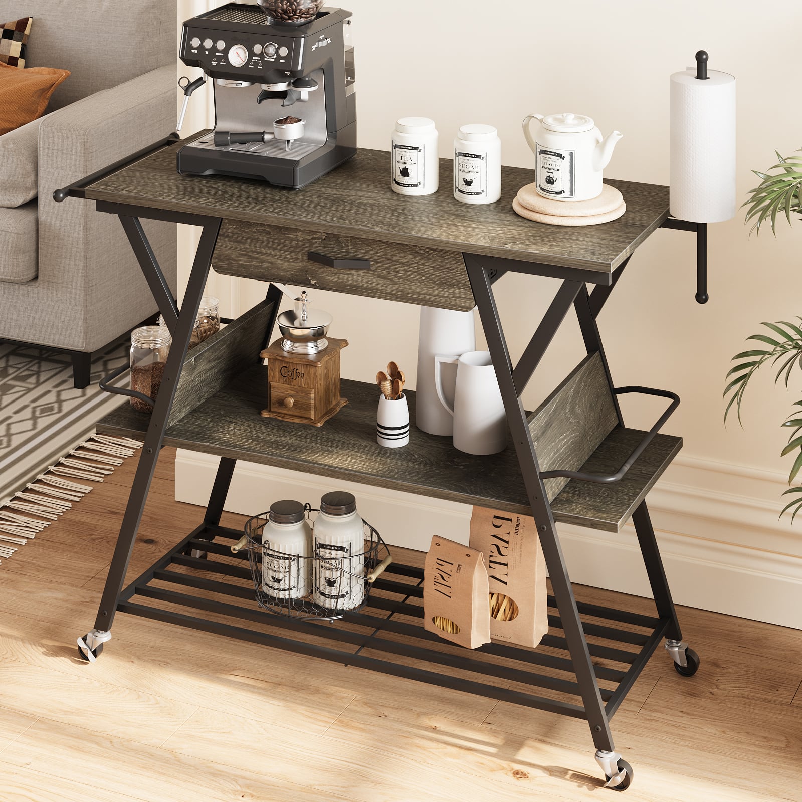 This question and answer was generated by AI based on customer and product data.QuestionWhy is this cart suitable for use as a coffee bar?