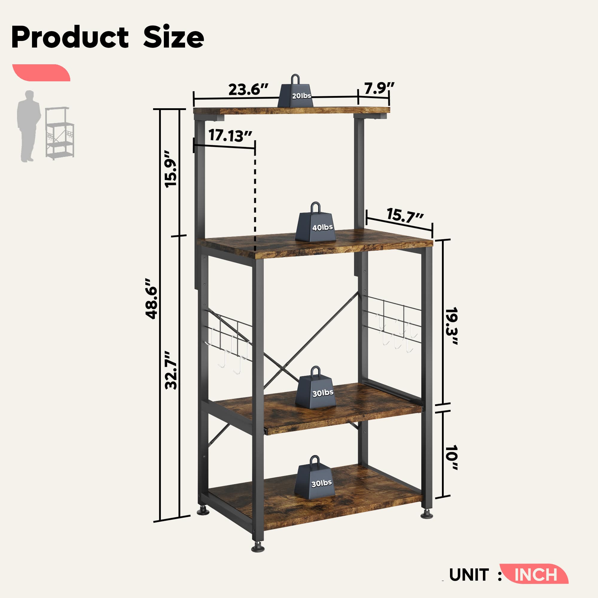 This question was asked about the related product: Bestier - Kitchen Baker's Rack with Storage Shelves and USB Outlets - Oak