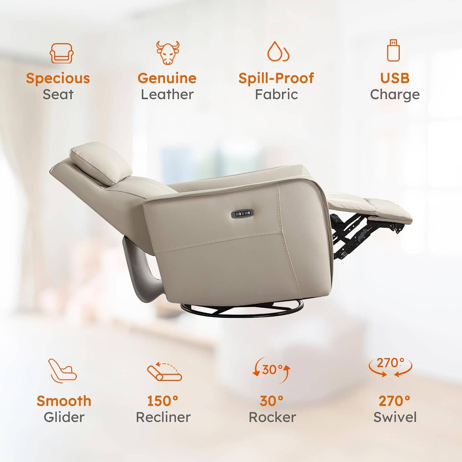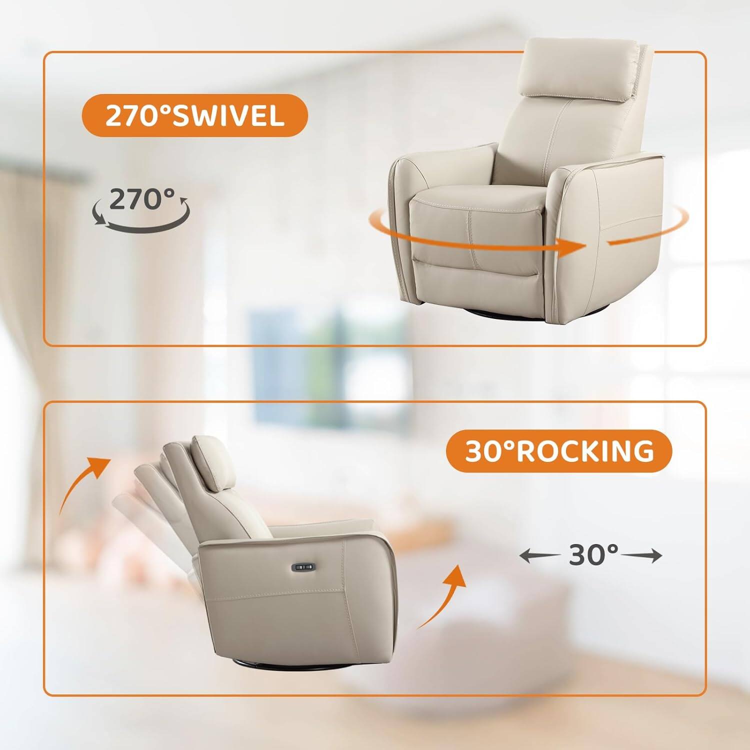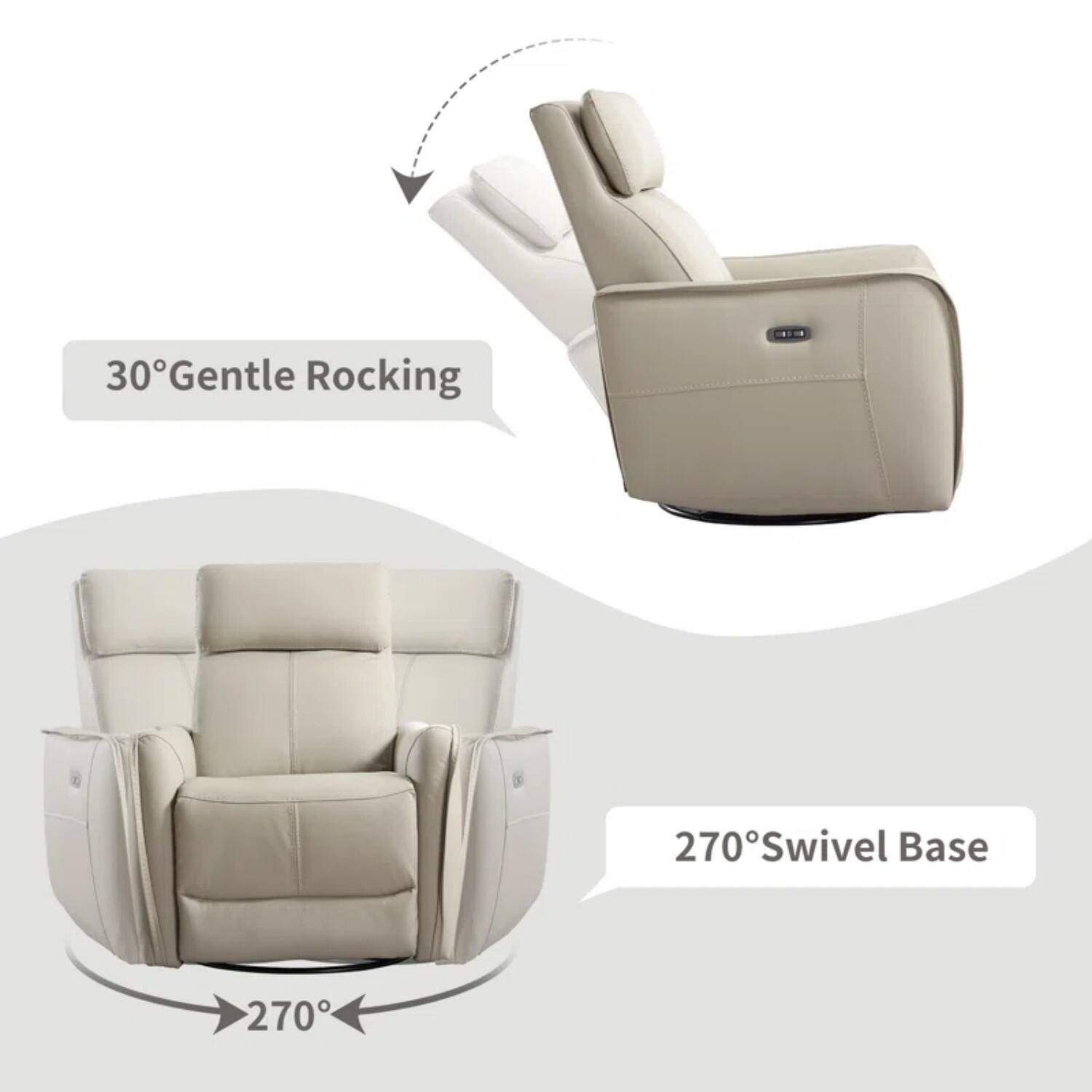 - A:Answer This recliner offers swivel and rocking capabilities for a full range of motion.