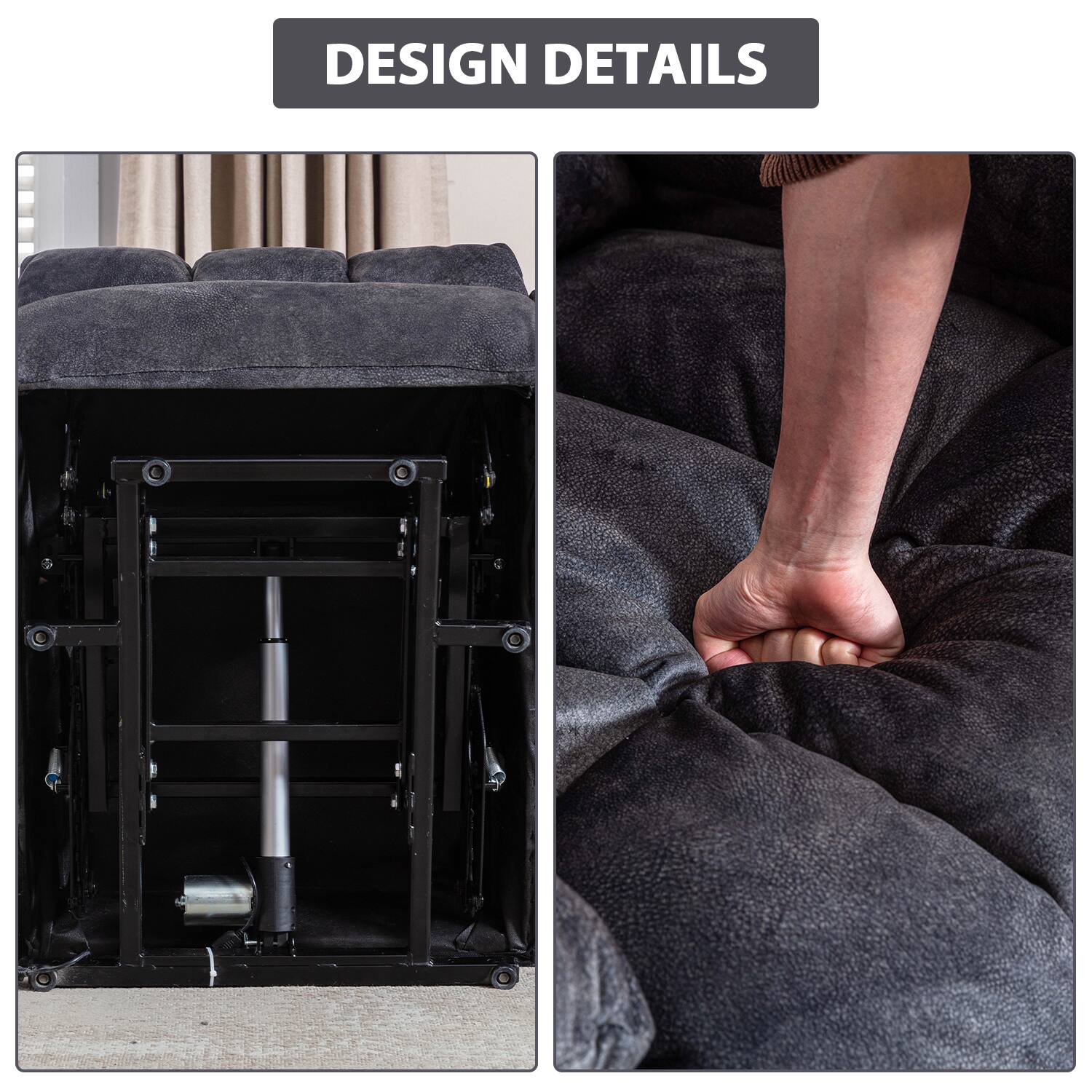 - A:Answer The recliner features overstuffed cushions and high-density foam.