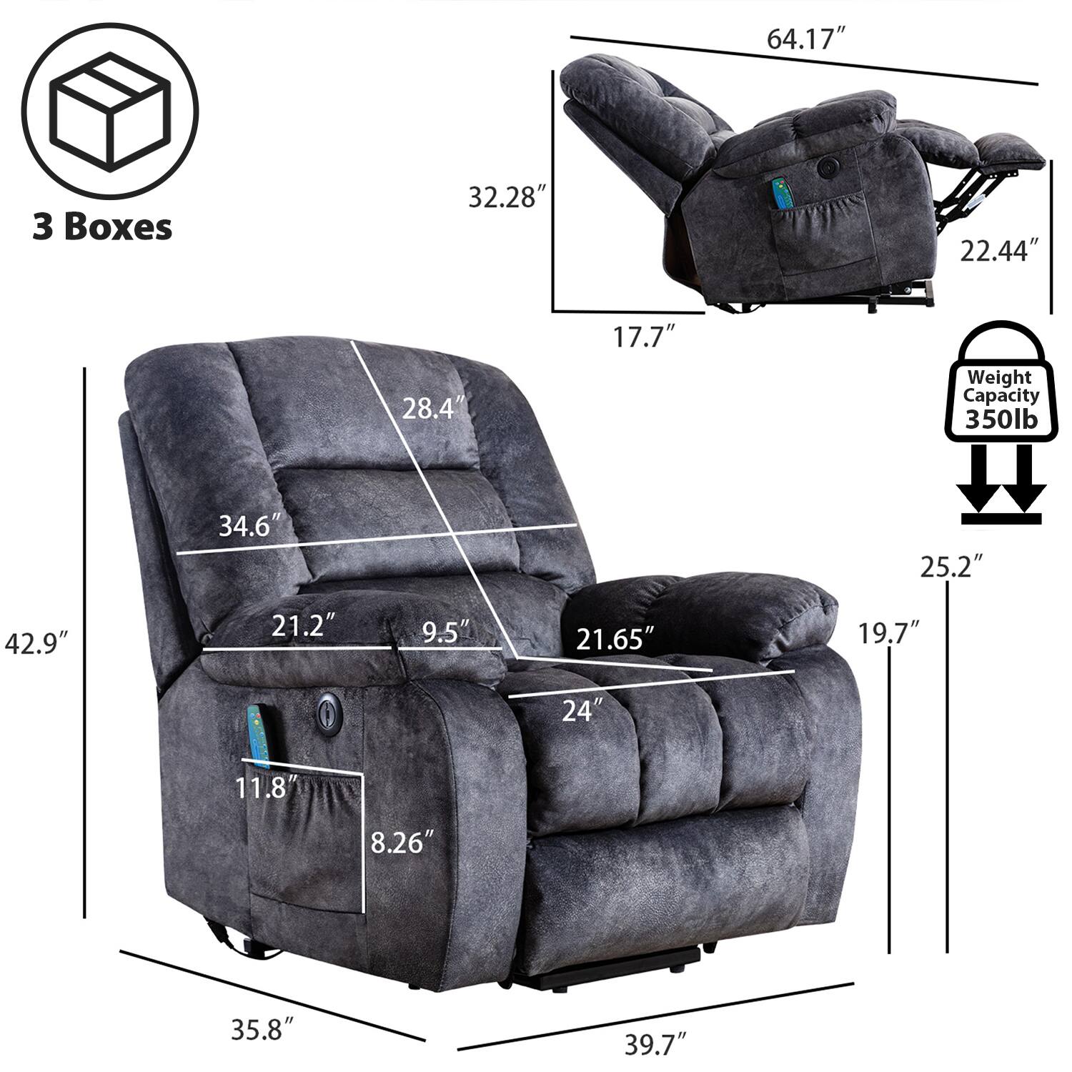 - A:Answer The maximum weight capacity of the recliner is 350 pounds.