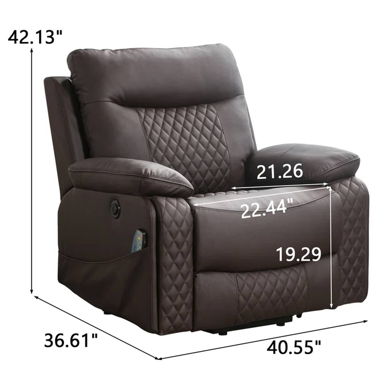 - A:Answer The chair is 40.55 inches wide, 36.61 inches deep, and 42.13 inches high.
