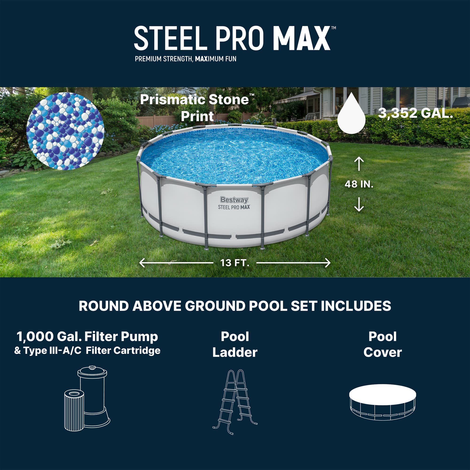 Bestway - Steel Pro MAX 13'x48" Round Above Ground Swimming Pool with Pump & Cover - Blue